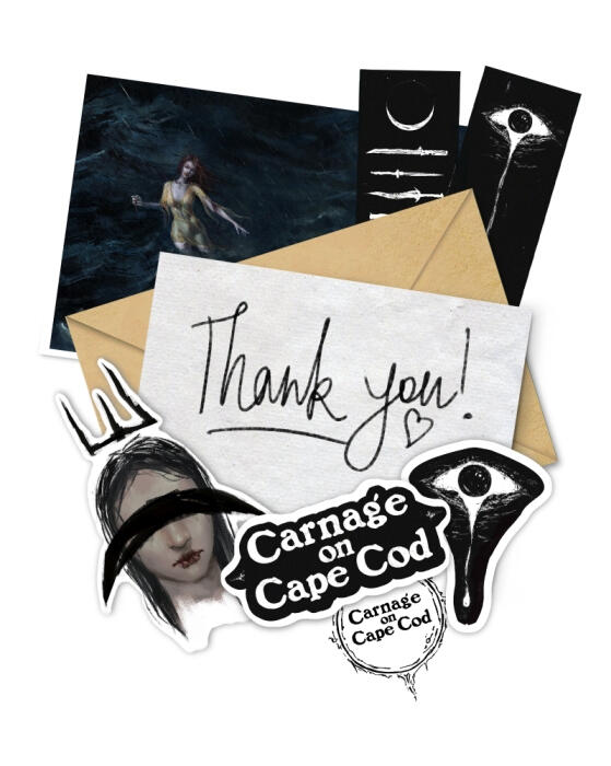 Today, I’m overwhelmed with gratitude, despite the numbers.And I want to thank some wonderful people who were there along the way, and those who stumbled upon my black book set and got curious about the crying eye on the cover.Thank you to all who pledged so far. You are making me believe that I am allowed to dream amidst the nightmares. Whether we make it or not, thank you from the bottom of my heart.Thank you to amazing emma gothHoblin bluesky and the team behind GothHoblin's Grimoire for awarding Carnage on Cape Cod with their micro grant a week before the campaign took off. They were the pat on the head I needed most when I needed it the most.Thank you to my favorite roleplaying podcast, Red Moon Roleplaying, for being a part of this journey, with a special shout-out to Craig Austin for the extraordinary work on the Carnage on Cape Cod’s prologue, which you can listen to here: